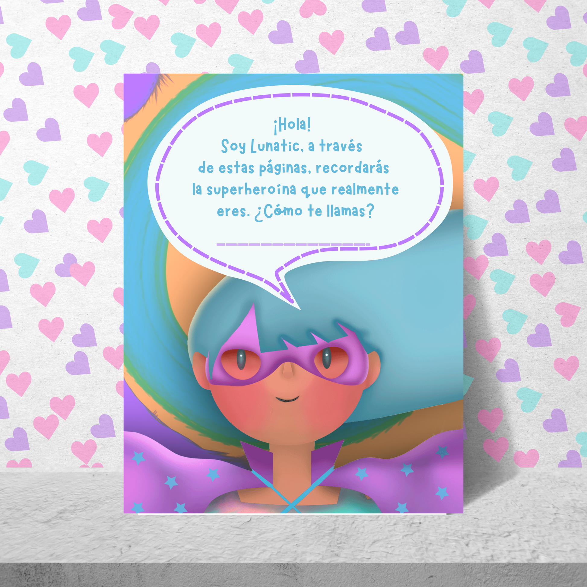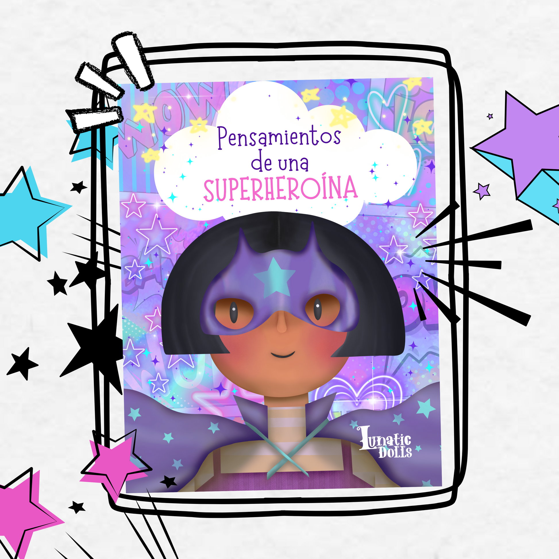 "Pensamientos de una Superheroína" Este libro de actividades de la marca ilustrada Lunatic Dolls Transformará la autoconfianza de las niños y adolescentes. Cada página se convierte en un espacio mágico donde pueden explorar su interior, expresar sus pensamientos y descubrir su potencial.